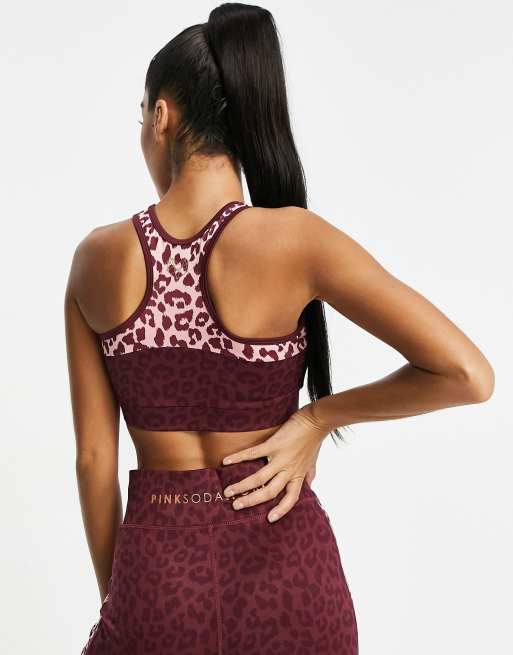 Pink Soda Sport Regina Medium Support Sports Bra In Burgundy Leopard Print Asos